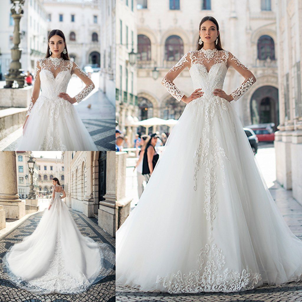 Discount Modern Ball Gown Wedding Dresses High Neck Long Sleeve